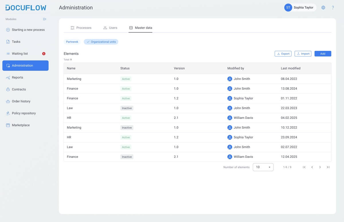 Docuflow offers preconfigured, quickly deployable modules for the most common needs, such as supporting procurement, contract management, or policy management.